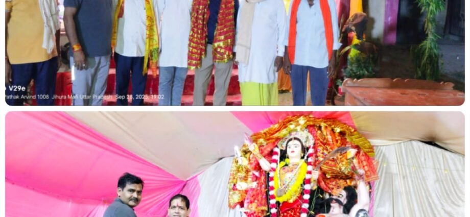 बहराइच। शारदीय नवरात्र पर्व पर रविवार को नव दुर्गा पूजा समिति पाठक पट्टी में मुख्य अतिथि वरिष्ठ सर्जन/एसकेएस कालेज सबलापुर के चेयरमैन डा. सर्वेश शुक्ला मातारानी के दरबार में पहुंचकर पूजा-अर्चना कर प्रसाद ग्रहण किया। हाईकोर्ट अधिवक्ता अनुराग पाठक ने मुख्य अतिथि डा. सर्वेश शुक्ला व धर्मेंद्र शुक्ला को चुनरी भेंटकर सम्मानित किया।