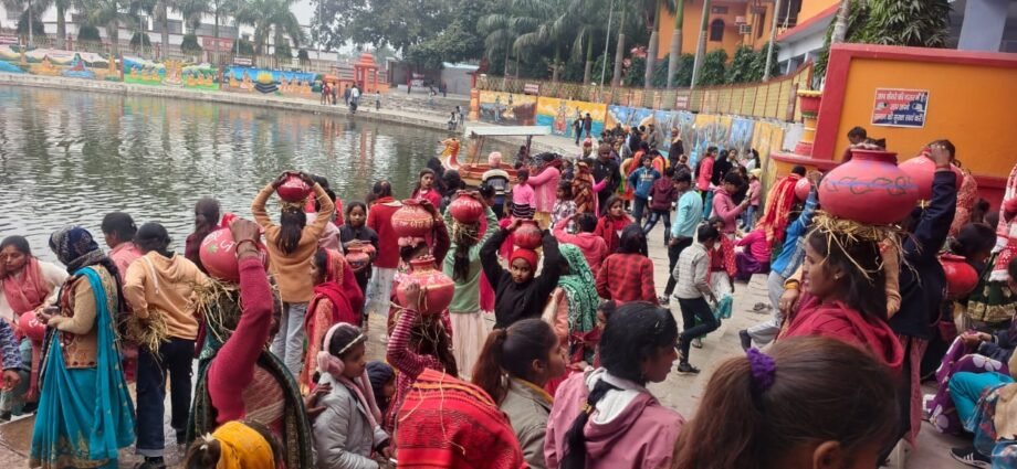 मथुरा बिलासपुर से मूर्ति स्थापना के लिए पैदल कलश शोभा यात्रा देवीपाटन के लिए रवाना।