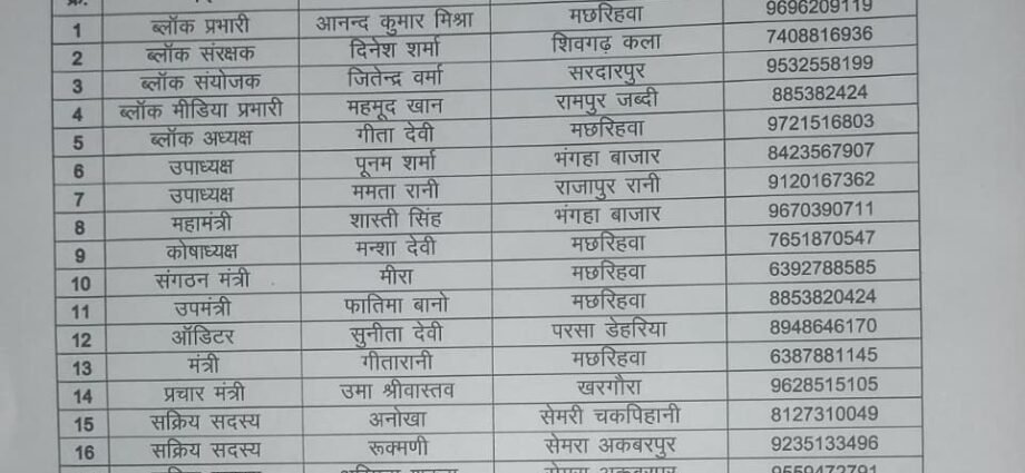 *हरिहरपुर रानी के ब्लाक कार्यकारिणी का किया गया गठन*