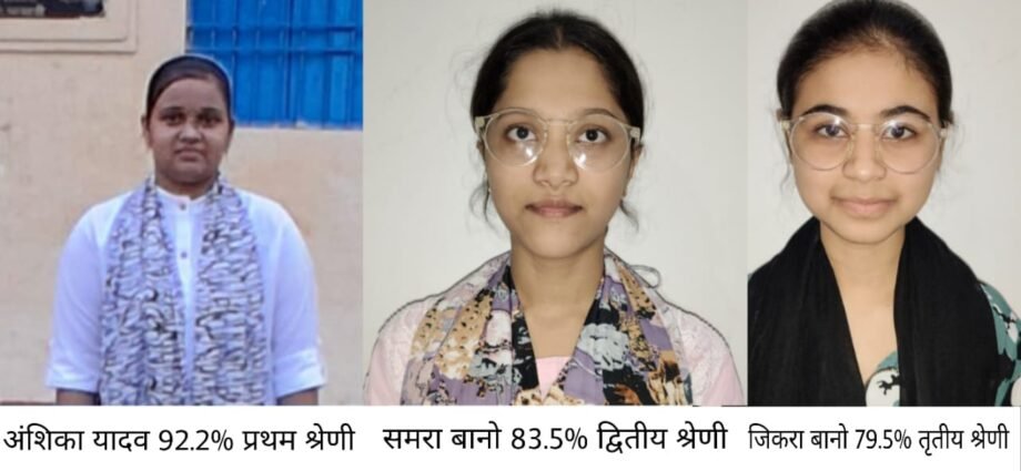 विद्यालय की छात्रा अंशिका यादव ने 92.2 प्रतिशत अंक प्राप्त कर विद्यालय में प्रथम स्थान हासिल किया। वहीं समरा बानो ने 83.5 प्रतिशत अंक के साथ द्वितीय स्थान प्राप्त किया तथा जिकरा बानो ने 79.5 प्रतिशत अंक पाकर तृतीय स्थान हासिल किया।